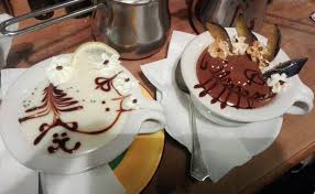 Siempre que en España fui a tomar chocolate (con churros) a una cafetería o chocolatería el chocolate era el típico oscuro pero en este sitio de Budapest tenían chocolate líquido de diferentes colores y con toque de diferentes sabores (yo lo pedí con toque de avellana creo recordar). Y además el sueño lo sirve muy bonito. Me dijo que usaba también chocolate de España. Y también vi que tenía mucha variedad de infusiones.